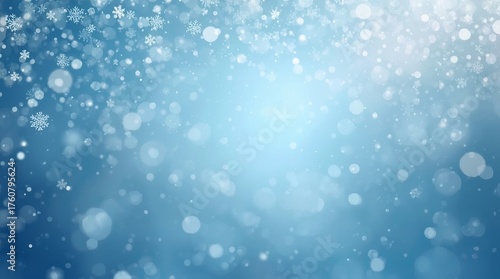 Blue winter background with falling snowflakes. Soft falling snowflakes illuminate a serene winter landscape with gentle light