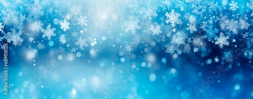 Blue winter christmas white snowflakes background, christmas and winter concept, Banner or card. copy space for text
