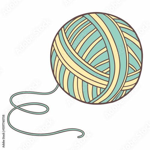 Blue yellow striped yarn ball with trailing thread wool knitting