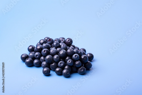 Blueberry fruit on a solid color background. Isolated object in photo studio. Commercial shot with copyspace.