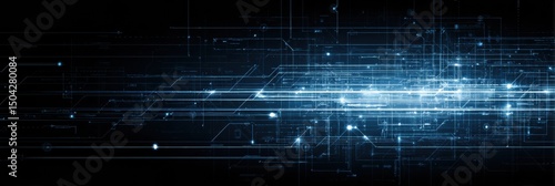 Blueprint Background Featuring Glowing Lines With a Cleared Zone Ideal for Design Elements and Overlays