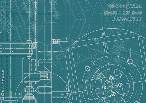 Blueprint, Sketch. Vector engineering illustration. Cover, flyer, banner, background. Instrument-making drawings. Mechanical engineering drawing. Technical illustrations, backgrounds. Scheme, plan