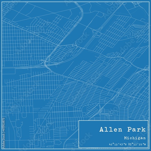 Blueprint US city map of Allen Park, Michigan.