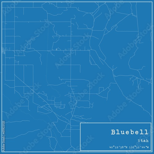 Blueprint US city map of Bluebell, Utah.