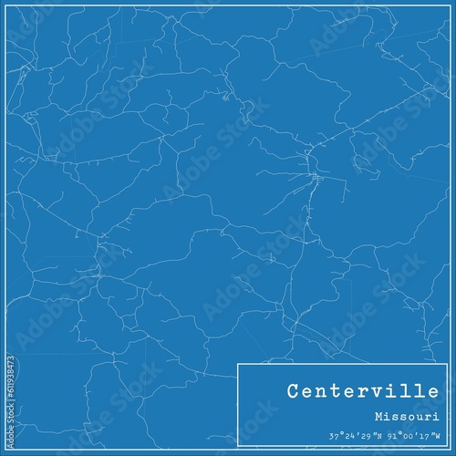 Blueprint US city map of Centerville, Missouri.