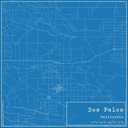 Blueprint US city map of Dos Palos, California.