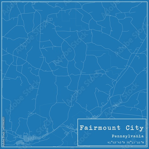 Blueprint US city map of Fairmount City, Pennsylvania.