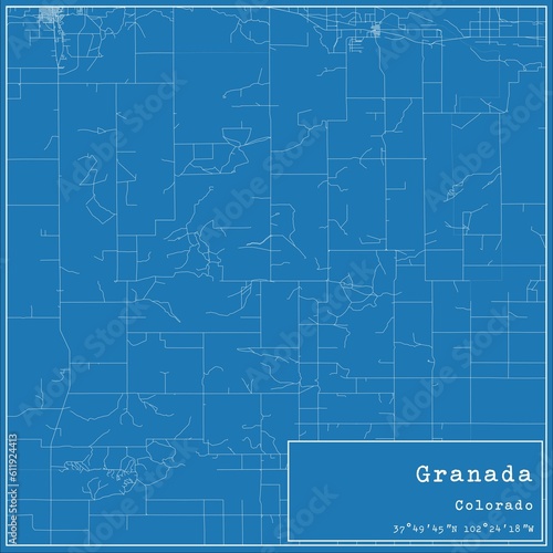 Blueprint US city map of Granada, Colorado.