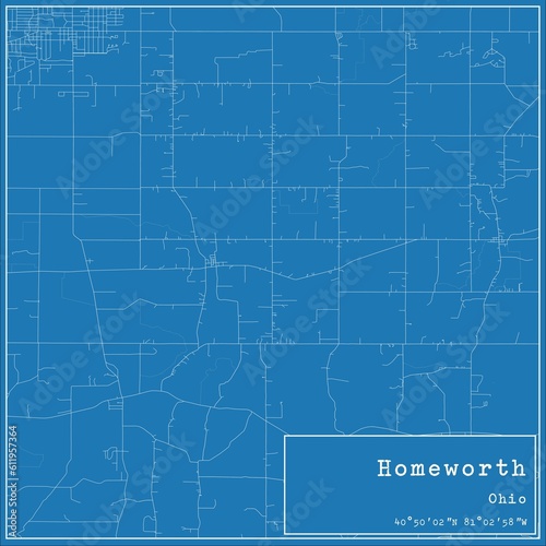Blueprint US city map of Homeworth, Ohio.