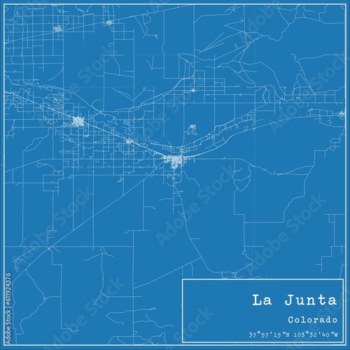 Blueprint US city map of La Junta, Colorado.