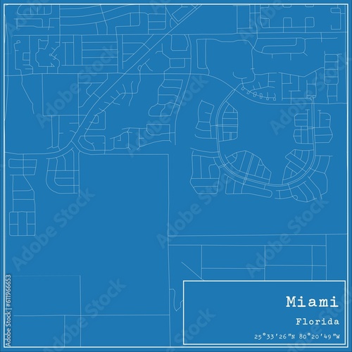 Blueprint US city map of Miami, Florida.
