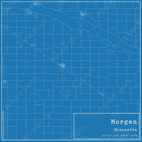 Blueprint US city map of Morgan, Minnesota.