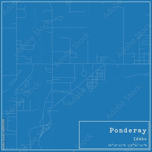Blueprint US city map of Ponderay, Idaho.