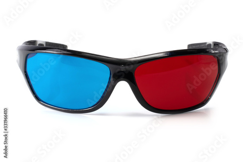 blue-red 3d glasses with plastic frames