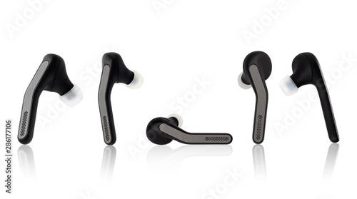 Bluetooth headset on a white background. Wireless headset close up on a white background.