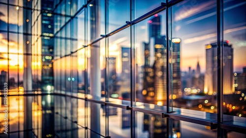 Blurred abstract glass wall from building in city town background.