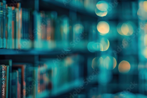 Blurred abstract library background with shelves, warm academic ambiance.