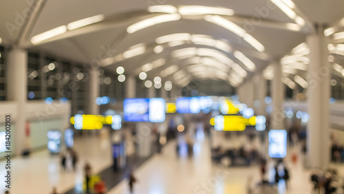 Blurred Airport Terminal Background with Modern Bokeh Lights