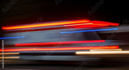 Blurred ambulance lights create a sense of urgency and movement at night.