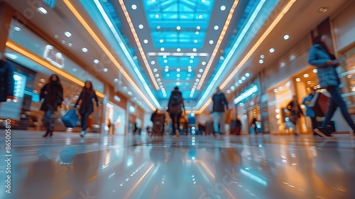 Blurred background of a modern shopping mall with some shopper