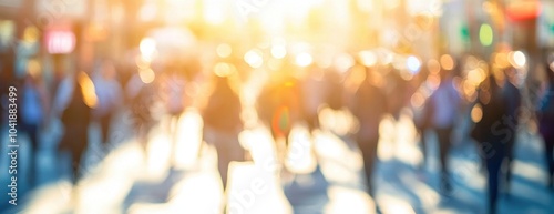 Blurred background of business people walking in the city, white blurred abstract background with many business people walking quickly Generative AI