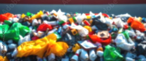 Blurred background underscoring a towering garbage mound, underscoring the global urgency for sustainable change