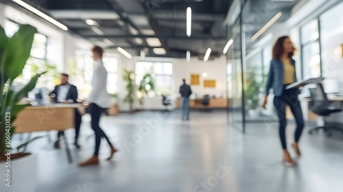 Blurred Business People In Office Light Gradient Background with Room for Typography