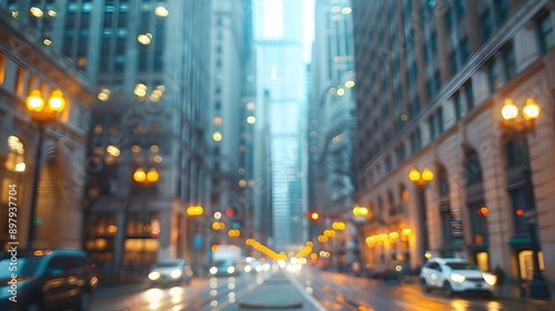 Blurred Chicago Cityscape of Historic Downtown Chicago at Night