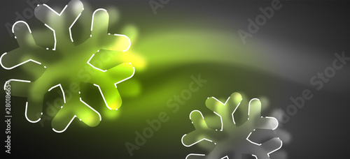 Blurred Christmas snowflake abstract background, stylized minimal design, neon glowing colors. Vector neon background. Snow background
