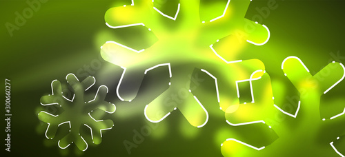 Blurred Christmas snowflake abstract background, stylized minimal design, neon glowing colors. Vector neon background. Snow background