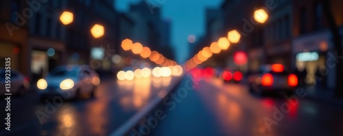 Blurred city lights creating a bokeh effect with bright round glowing balls, illumination, background