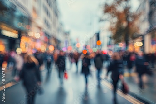 Blurred City Street Scene: An Impressionistic Evening Crowd