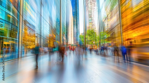 Blurred city street with fast-moving people.