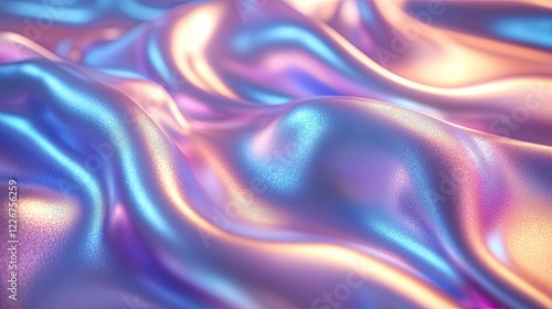 Blurred closeup of ethereal pastel neon pink, purple, lavender, orange, and yellow holographic metallic foil background. Abstract modern surreal futuristic disco rave techno festive dreamlike backdrop
