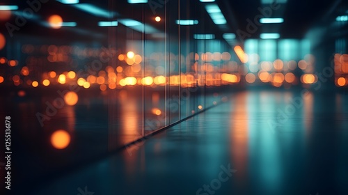 Blurred Glass Walls of Modern Corporate Office Building in Illuminating Interior