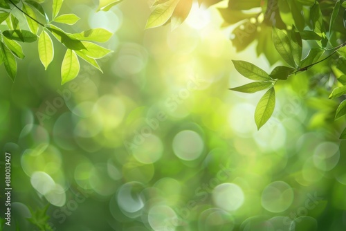 Blurred green nature background with bokeh for spring or summer season banner, close up Generative AI