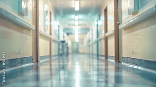 Blurred hospital or clinic corridor background with modern medical equipment and clean design for healthcare and scientific research concepts