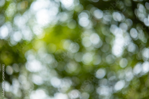 Blurred image bokeh of trees in the forest with natural landscape