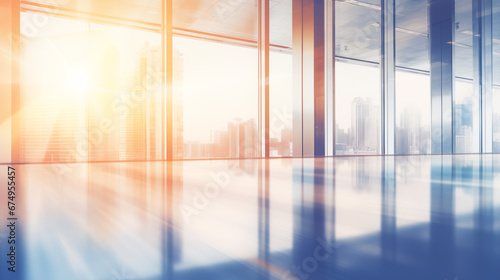 Blurred light modern office interior with panoramic windows and beautiful lighting