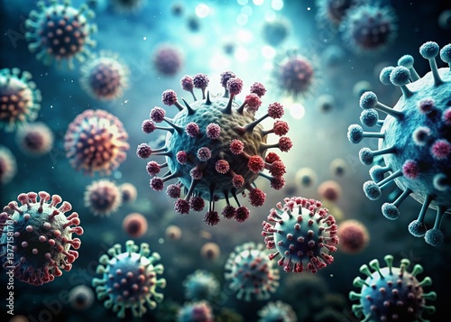 Blurred Microscopic Virus Background with Copy Space for Medical Research