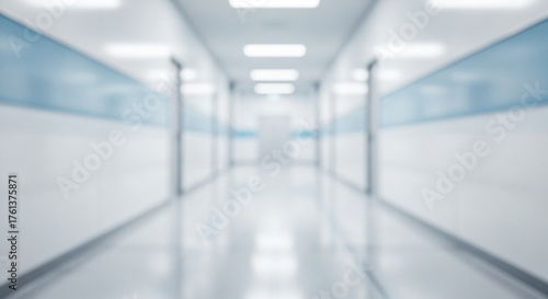 Blurred Modern Hospital Interior Hallway Empty Clean Walkway Background