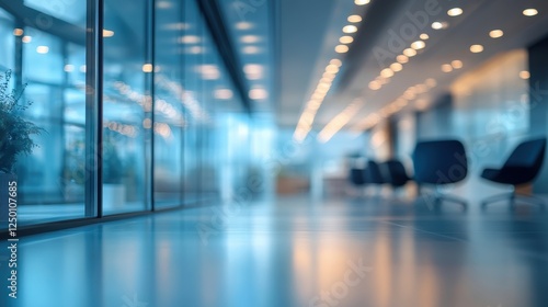 Blurred modern office hallway with chairs. Ideal for corporate, business, or success themes.