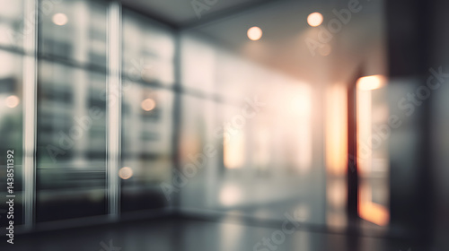 Blurred office interior background with blurred door modern workspace abstract environment perspective