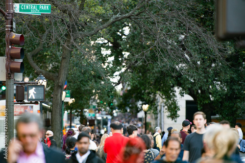 Blurred picture of tourists walks on the 5th avenue in New York, Manhattan, USA. Fifth Avenue is a major thoroughfare in the borough of Manhattan in New York City.