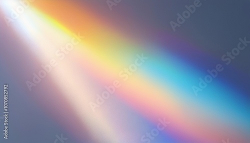 Blurred rainbow light refraction texture overlay effect for photo and mockups. Organic drop holographic flare on a white wall.