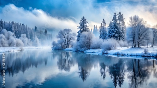 blurred shades of gray and blue creating a sense of winter fog.