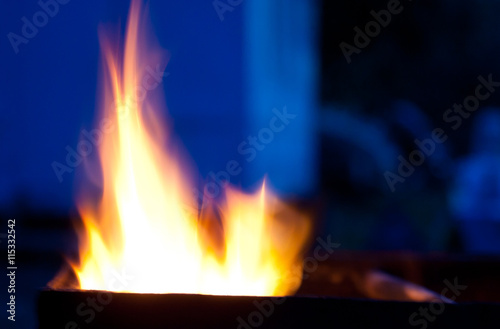 Blurred silhouettes of flames of fire in the evening (as an abstract background), with copy space on the right for your text
