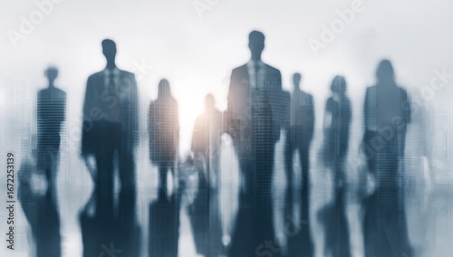 Blurred silhouettes of people walking