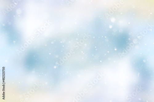 blurred snow / winter abstract background, snowflakes on abstract blurred glowing leaf background