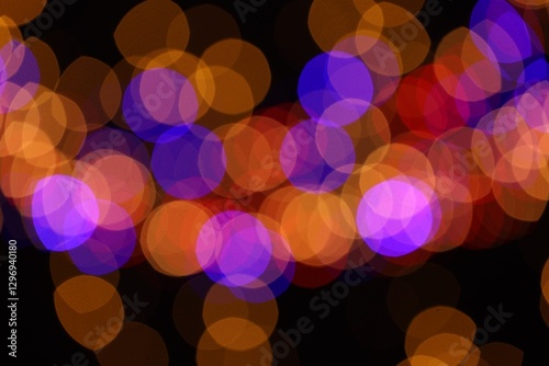 Blurred view of colorful lights on black background, bokeh effect
